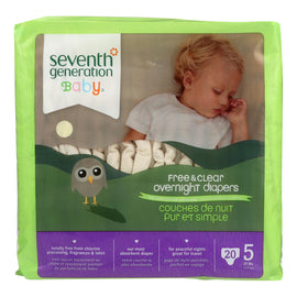 Seventh Generation Free And Clear Overnight Diapers - Stage 5 - Case Of 4 - 20 Count