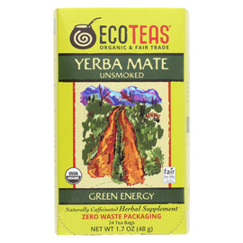 Ecoteas Organic Yerba Mate Unsmoked Green Energy Tea Bags - Case Of 6 - 24 Bags