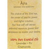 Aloha Bay Chakra Candle Jar Abundance Description: 100% Pure Essential Oils Lavendar, Fir and Chamomile The chakra of the third eye, the center of psychic power and higher intuition. Your true self will attract unlimited resources, power, and compassion to realize your destiny. Disclaimer These statements have not been evaluated by the FDA. These products are not intended to diagnose, treat, cure, or prevent any disease.