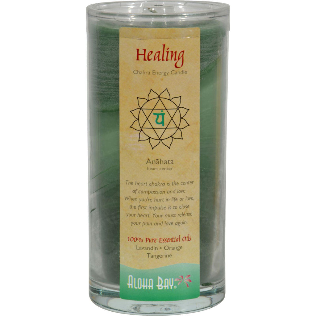 Aloha Bay Chakra Candle Jar Healing Description: 100% Pure Essential Oils Lavandin, Orange, and Tangerine The heart chakra is the center of compassion and love. When you are hurt in life or love, the first impulse is to close your heart. You must release your pain and love again. Disclaimer These statements have not been evaluated by the FDA. These products are not intended to diagnose, treat, cure, or prevent any disease.