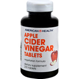 American Health Apple Cider Vinegar Description: Apple Cider Vinegar tablets deliver all the nutritional benefits of apple cider vinegar, and are provided in tablet form for those who don't enjoy the tart taste of vinegar. Highly popular with fitness enthusiasts and individuals following healthy diets, Apple Cider Vinegar has been traditionally used to purify and cleanse the body and makes a perfect addition to your nutritional wellness program. Free Of Yeast, wheat, milk or milk derivatives, lactose, sugar, preservatives, soy, artificial color, artificial flavor, sodium (less than 5mg per serving). Disclaimer These statements have not been evaluated by the FDA. These products are not intended to diagnose, treat, cure, or prevent any disease.