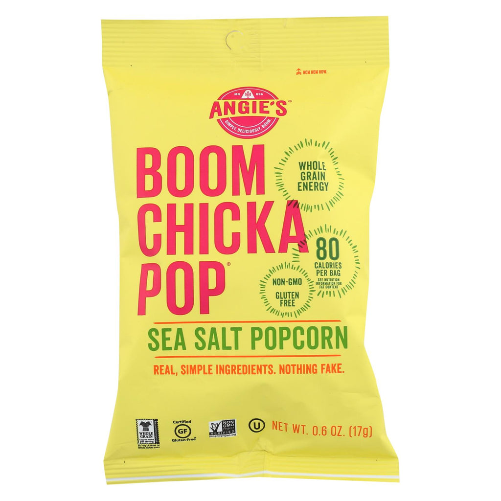 Angie's boomchickapop popcorn, sea salt is a snack you can feel good about. This flavorful popcorn is made with real ingredients found in a kitchen, not in a lab. A snack packed with energy, not guilt, this popcorn is kosher, vegan, gluten-free and non-gmo. This popcorn is packed in bright bags that radiate all the love and fun that went into them from the beginning. Each bag of angie's boomchickapop popcorn, sea salt contains 0.6 oz. Of always real popcorn.