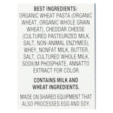 ingredients : best : organic wheat pasta;organic wheat;organic whole grain wheat;cheddar cheese;cultured pasteurized milk;salt;non-animal enzymes;whey;nonfat milk;butter;cultured whole milk;sodium phosphate;annatto extract for color