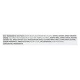 ingredients : best rice pasta;white rice flour;brown rice flour;tapioca starch;dried cheddar cheese;cultured pasteurized milk;salt;non-animal enzymes;nonfat milk;corn starch;organic coconut oil;whey;butter;potassium chloride;cultured whole milk;sunflower lecithin;sodium phosphate;annatto extract;for color;silicon dioxide;for anticaking