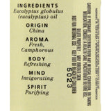 Aura Cacia Essential Oil Eucalyptus Pure Description: 100% Pure Essential Oil Exhilarating Latin Eucalyptus globulus OriginChinaAromaFresh, CamphoraceousBodyRefreshes the bodyMindInvigorates the mindSpiritPurifies the spirit Disclaimer These statements have not been evaluated by the FDA. These products are not intended to diagnose, treat, cure, or prevent any disease.