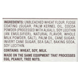 ingredients : unbleached wheat flour;fudge coating;sugar;palm kernel oil;cocoa powder;processed with alkali;soy lecithin;an emulsifier;natural flavor;whole milk powder;salt;palm oil;cane sugar;invert cane sugar;sea salt;baking soda