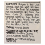 ingredients : multigrain & bean crisps;cornmeal;brown rice;millet;cane sugar;corn starch;rice extract;teff;caramelized pear juice concentrate;navy beans;canola oil;sweetened dried cranberries;cranberries;sugar;sunflower oil;sunflower seeds;almonds;invert cane sugar;flax seeds;sesame seeds;maple syrup;natural flavors;sea salt