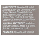 ingredients : blanched roasted almonds;enjoy life chocolate chips;sugar;natural chocolate liquor;non-alcoholic;non-dairy cocoa butter;palm fruit oil;extra virgin coconut oil;natural coconut flavor