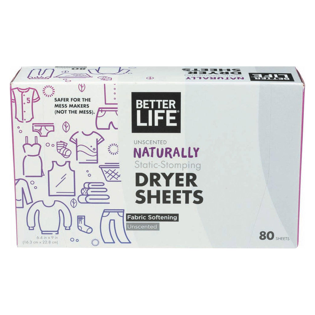 Better Life Dryer Sheets - Unscented - Case Of 6 - 80 Count