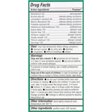 Ingredients : adrenalium (adrenaline) 6X, Bryonia alba (white bryony) 6X, Lycopodium clavatum (club moss) 6X, Natrum muriaticum (sodium chloride) 6X, Pulsatilla nigricans (wind flower) 6X, Avena sative (oat) 12 X, Glycine max (soy) 12X, Histaminum (histamine)12X, Hordeum vulgare (barley) 12X, Secale cereal (rye) 12X, Triticum aestivum (wheat) 12X, Zea mays (corn) 12X. Inpurified water, 20% USP alcohol.