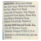 ingredients : whole grain rolled oats;cane sugar;whole grain brown rice flour;mixed fruit blend concentrate;pineapple;pear;peach;unsulphured dried apples;brown rice syrup;natural blueberry flavor;blueberry concentrate;vitamine