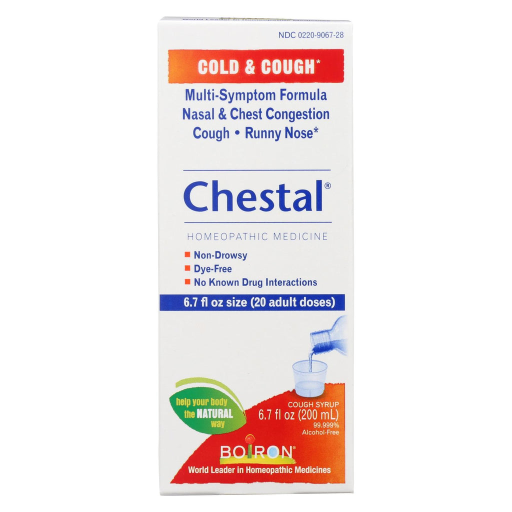 Boiron chestal cold and cough is another fantastic remedy from a company your family can trust. This remedy is specially designed to help alleviate cold and cough symptoms such as nasal and chest congestion, cough, and runny nose. This medication comes from boiron, a worldwide leader in homeopathic remedies and a trusted name in medicine for decades. Includes 6.7 fl. Oz. Bottle. At boiron, we believe there's a better way to feel good, a way that works naturally with your body. Since 1932 we've been in the business of making people feel better again, and as a world leader in homeopathic medicines, our passion is your total health. Please refer to back label before administering to see warnings and intended use.