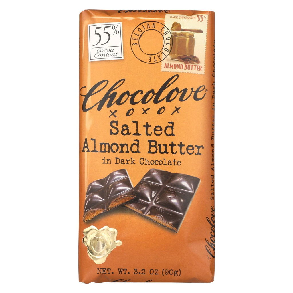 Chocolove Xoxox - Dark Chocolate Bar - Salted Almond Butter - Case Of 10 - 3.2 Oz