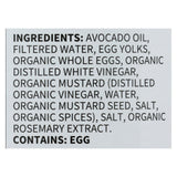 ingredients : avocado oil;filtered water;egg yolks;organic whole eggs;organic distilled white vinegar;organic mustard;distilled organic vinegar;water;organic mustard seed;salt;organic spices;organic rosemary extract