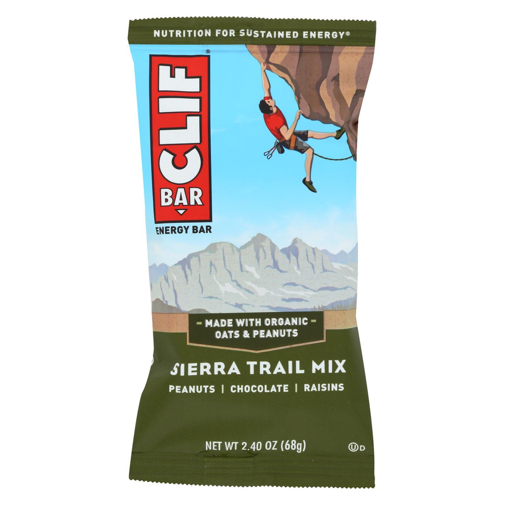 Clif sierra trail mix energy bar gives you lasting energy when you need it. This energy bar has everything that make clif bars great - a bunch of vitamins and minerals like iron, calcium, potassium, and vitamins a, b6, b12, c, d and e. All that with 4 g. Of fiber and 10 g. Of protein per serving. Timeless trail mix ingredients organic peanuts, organic raisins, chocolate and seeds come together for a delicious on-the-go snack. See nutrition facts panel for allergens. Includes one 2.4 oz. Clif energy bar, sierra trail mix. At clif, we’re passionate about food. Food that feeds and inspires the adventure in all of us. Whether you’re going on a hike, hitting the slopes, or competing in a triathlon, our recipes are purposefully crafted to help provide the energy you need.