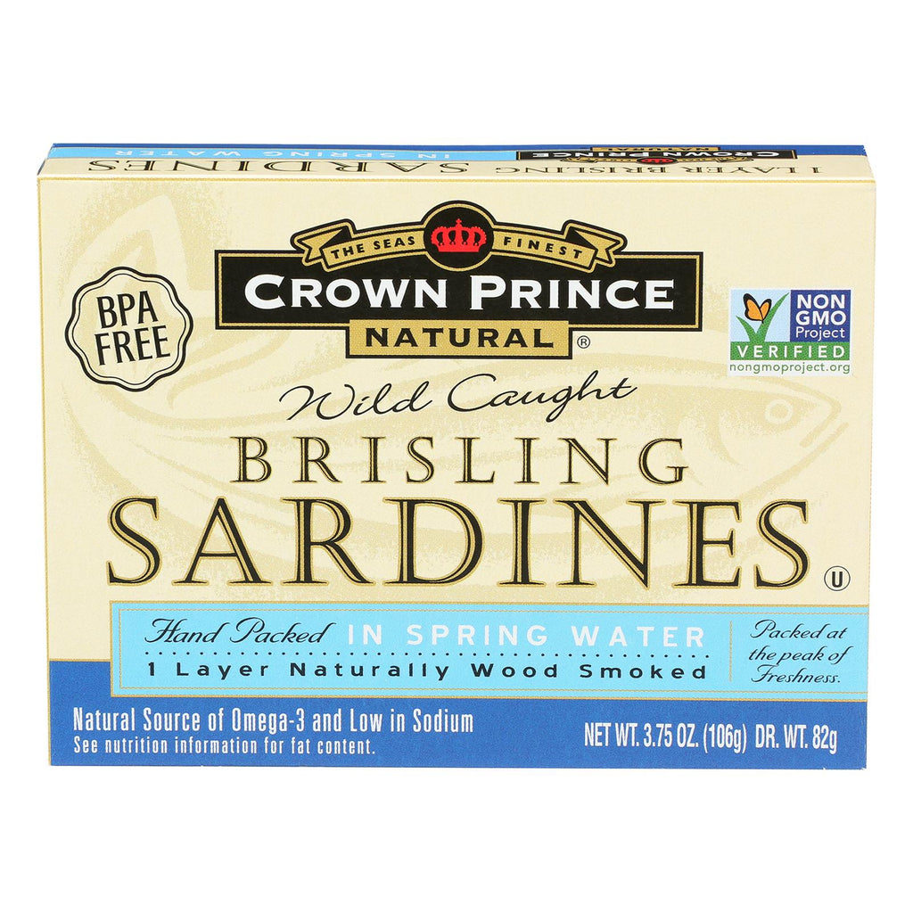 Crown Prince Brisling Sardines In Spring Water - Case Of 12 - 3.75 Oz.