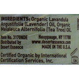 Desert Essence Organic Oil Lavender and Tea Tree Description: aroma essence Desert Essence Organic Lavender and Tea Tree oils provide the soothing benefits of Organic Lavender and the inherently antiseptic benefits of Organic Tea Tree Oil. Free Of Alcohol, artificial detergents, color or synthetic fragrances. No animal testing of raw materials or final product. Disclaimer These statements have not been evaluated by the FDA. These products are not intended to diagnose, treat, cure, or prevent any disease.