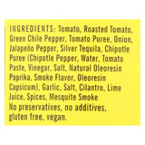 ingredients : tomato;roasted tomato;green chile pepper;tomato puree;onion;jalapeño pepper;silver tequila;chipotle puree;chipotle pepper;water;tomato paste;vinegar;salt;natural oleoresin paprika;smoke flavor;oleoresin capsicum;garlic;cilantro;lime juice;spices;mesquite smoke