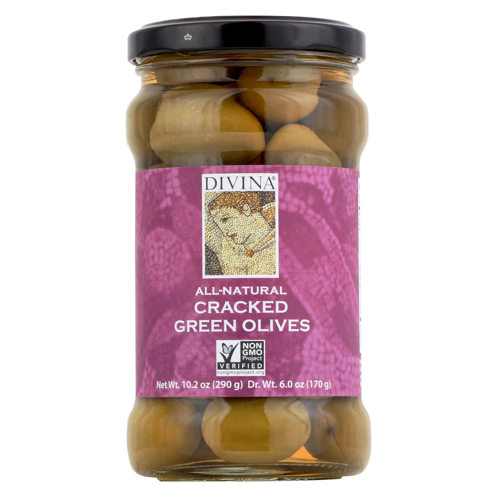 Divina Cracked Green Olives - Case Of 6 - 6.14 Oz.