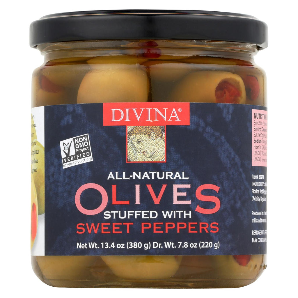 Divina Olives Stuffed With Sweet Peppers - Case Of 6 - 7.8 Oz.