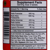 Ingredients : Kudzu root (ge gen or radix puerariae), puerarin, puerarin-xyloside, daidzein, daidzin B-sitosterol, arachildic acid, and hairy holly root.