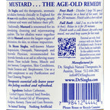 Dr.Singha's Mustard Bath Description: The Original Formula with Powdered Mustard Seed Eucalyptus Rosemary Wintergreen and Thyme Mustard Bath has been renowned for its stimulating, rejuvenating and cleansing qualities and may be helpful with stress, muscle and joint soreness, congestion, skin conditions, tension, sleeplessness and is supportive during a cleansing program. Disclaimer These statements have not been evaluated by the FDA. These products are not intended to diagnose, treat, cure, or prevent any disease.