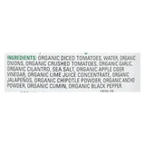 ingredients : organic diced tomatoes;water;organic onions;organic crushed tomatoes;organic garlic;organic cilantro;sea salt;organic apple cider vinegar;organic lime juice concentrate;organic jalapeños;organic chiotle powder;organic ancho powder;organic cumin;organic black pepper