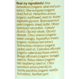 Ingredients : Aloe barbadensis (organic aloe) leaf juice, Olea europaea (organic olive) fruit oil, Helianthus annuus (organic sunflower) seed oil, Kosher vegetable glycerin, Butyrospermum parkii (organic shea) butter, Olivoyl hydrolyzed oat protein, Cetearyl alcohol, Glyceryl oleate, Glyceryl stearate, Citrus sinensis (organic sweet orange), Aspalathus linearis (organic rooibos) leaf extract, Simmondsia chinensis (organic jojoba) seed oil, Calendula officinalis (organic calendula) flower extract, Borago officinalis (organic borage) seed oil, Rubus idaeus (organic red raspberry) seed oil, Citrus aurantium amara (neroli) oil, Vanilla planifolia (organic vanilla) fruit extract, Xanthan gum