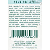 Mind Body Therapy Ergo-Form Not Tested on Animal Environmental Caring True to Life Get a handle on this dual function massage brush with Earth Therapeutics Ergo-Form non-slip ergonomic grip. Its special "wave-groove" construction gives you secure leverage as you soothe, stimulate, and exfoliate. Regular exfoliation is important because it unclogs pores - allowing skin to release toxins trapped inside the body. A cushion of mini massage balls relaxes tense muscles and stirs up circulation, while a plush matting of semi-stiff bristles gives skin a good buffing.