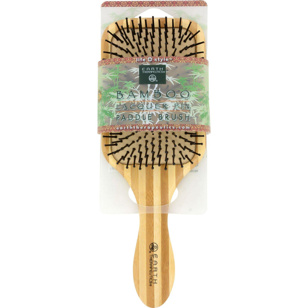 Earth Therapeutics Large Bamboo Lacquer Pin Paddle Brush Description: Minimizes Static True to Life Salon Style Cruelty-Free No Animal Testing Look Good Feel Good Ecology Good for the Earth Good for You Constructed of the finest quality natural bamboo wood with pin bristles set in a soft pneumatic air cushion base, this hair brush is ideal for detangling, smoothing, and grooming all types of medium to very long hair. The bristles are also tipped with round, molded balls to help prevent breakage and split ends. Regular brushing will set hair to its naturally soft, lustrous sheen - healthier, more manageable, easier to style. Earth Therapeutics brings professional grade grooming to your fingertips. Disclaimer These statements have not been evaluated by the FDA. These products are not intended to diagnose, treat, cure, or prevent any disease.