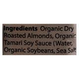 ingredients : organic dry roasted almonds;organic tamari soy sauce;water;organic soybeans;sea salt