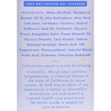 Ingredients : UPS Progesterone, Tocopheryl Acetate (Vitamin E), Purified Water, Panthenol (Vitamin B), Aloe Barbadensis (Aloe Vera), Leaf Juice, Glyceryl Stearate, Caprylyl Glycol, Glycerin, Prunus Amygdaalus Dulcis (Sweet Almond) Oil, Cathamus Tinctorius (Hybrid Safflower) See Oil, Carbomer, Cetyl Alcohol, Sodium Behenoyl Lactylate, Stearic Acid, Citrus Medica Limonum (Lemon) Peel Oil, Citrus Aurantium Dulcis (Orange) Oil, Phenoxyethanol and Sorbic Acid.