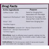 Ingredients : Coffea Cruda* 30C, Hypericum Perforatum* 30C, Silicia* 30C Inactive Ingredients: French Lavandula Super Oil*, Anthenis Nobelis Oil*, Himilayan Matricaria Recutita Chamomile*, American Sesamum Indicum Oil* * Certified Organic