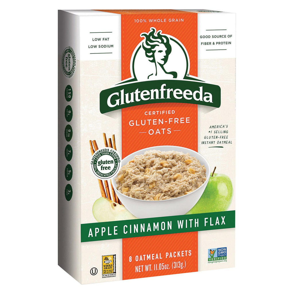 Glutenfreeda's Apple Cinnamon Instant Oatmeal contains all natural apples, cinnamon, brown cane sugar and flax for a delicious, wholesome breakfast. A great, healthy breakfast that's ready in minutes.