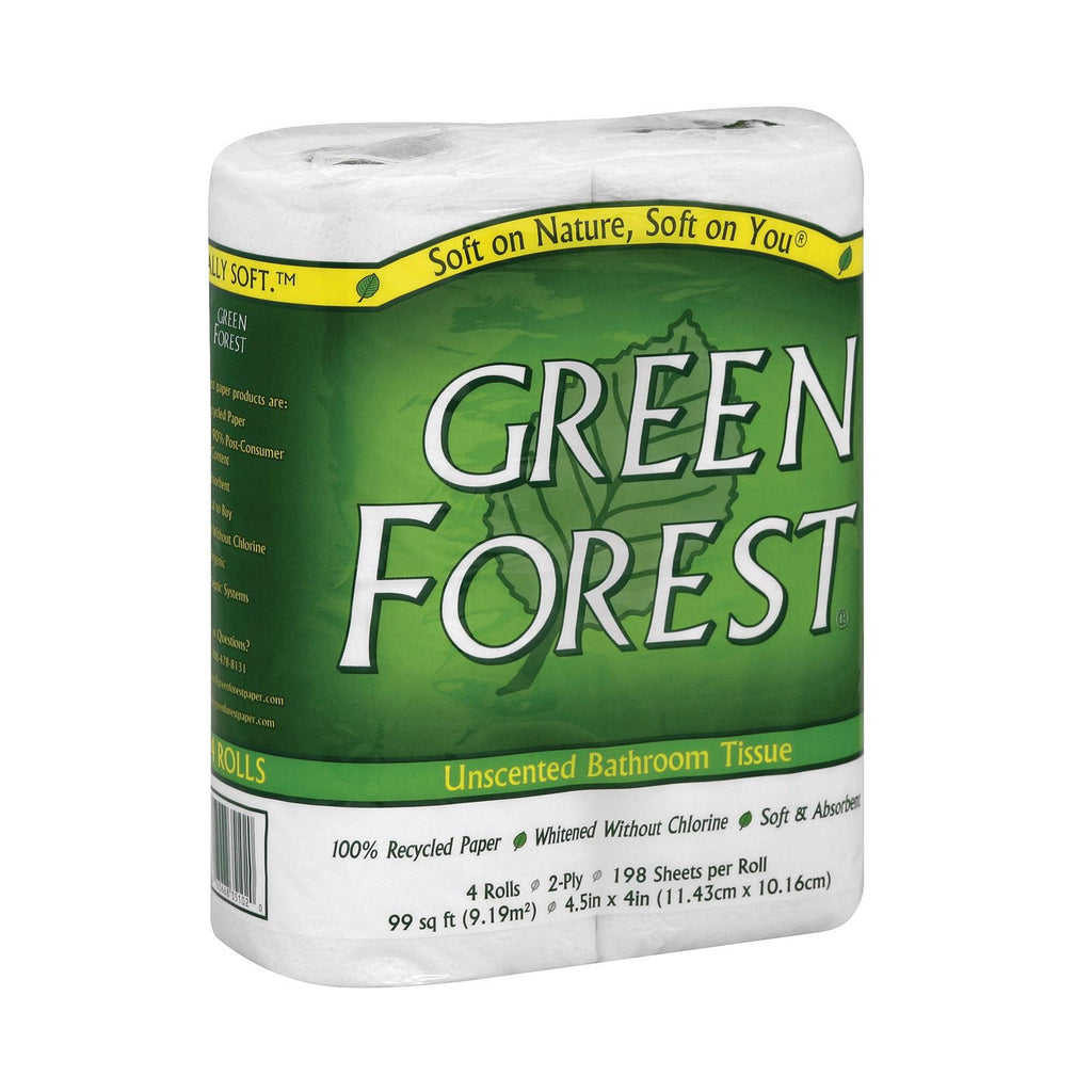 Bathroom tissue is one of our most popular products. It is soft and strong. You get great value with our sheet size and sheet counts, which often exceed that of many leading traditional brands. All that, plus Green Forest delivers with one of the highest post-consumer recycled content of any brand.