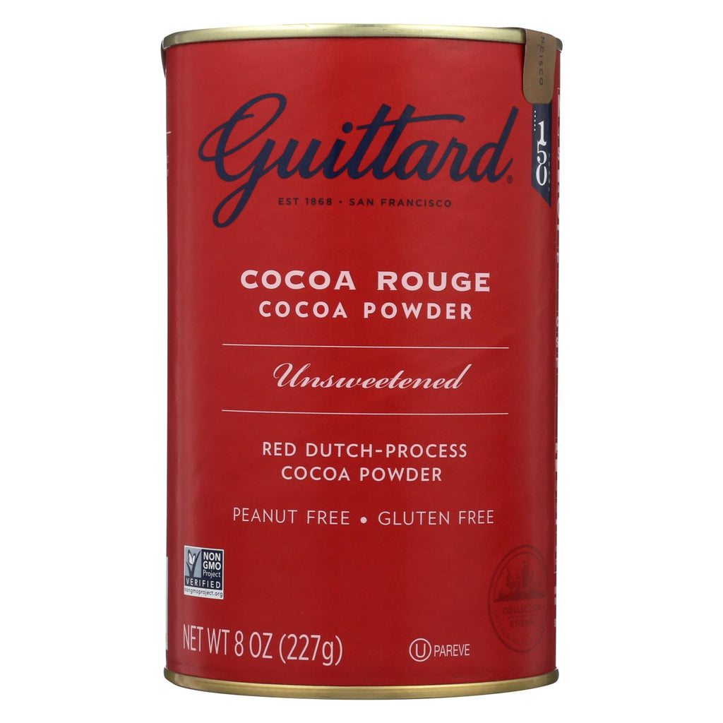 Guittard cocoa rouge cocoa powder is processed in the classic dutch tradition. You will love baking cookies and brownies and making delectably delicious hot chocolate with this pure powder. You can even use it in savory dishes such as chili and mole. The ingredients we use are all natural and not genetically engineered. Includes one 8 oz. Canister.