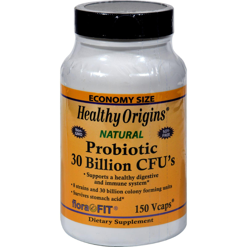 Healthy Origins Probiotic 30 Billion CFU Description: Supports a healthy digestive and immune system 8 strains and 30 billion colony forming units No refrigeration required Stomach acid resistant Healthy Origins Probiotic 30 Billion CFU's is a powerful blend of 8 friendly bacteria strains and 30 billion colony forming units (CFU's) which can help support a positive balance of micro flora in the intestines. Supplementing with probiotics may help to restore and maintain friendly bacteria colonies that were depleted by stress, antibiotics and gastrointestinal disturbances. Healthy Origins Probiotic 30 Billion CFU's is stomach acid resistant to ensure that the maximum amount of friendly bacteria reach the intestinal tract to exert their greatest benefits. Probiotic 30 Billion CFU's is stable at room temperature. Refrigeration is not required. Amount Per Capsule Blend of 8 probiotic strains 30 Billion CFU's Lactobacillus acidophilus 12 Billion CFU'sBifidobacterium lactis 12 Billion CFU'sLactobacillus casei 1 Billion CFU'sBifidobacterium breve 1 Billion CFU'sLactobacillus salivarius 1 Billion CFU'sLactobacillus plantarum 1 Billion CFU'sBifodobacterium longum 1 Billion CFU'sLactobacillus rhamnosus 1 Billion CFU's Free Of Sugar, salt, yeast, wheat, starch, corn, fish, shellfish, nuts, tree nuts and egg. Disclaimer These statements have not been evaluated by the FDA. These products are not intended to diagnose, treat, cure, or prevent any disease.