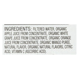 ingredients : filtered water;organic apple juice from concentrate;organic white grape juice from concentrate;organic orange juice from concentrate;organic mango puree;natural flavor;organic natural flavors;citric acid;vitamin c;ascorbic acid