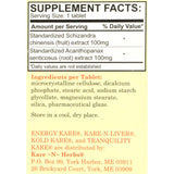Kare-N-Herbs Kare-N-Liver Description: Fast-Acting, Natural, Non-Toxic Immune Enhancer. Antioxidant and Liver Cleaner. Kare-N-Liver is a highly potent mixture of the medicinal herbal plants Schizandra chinensis and Acanthopanax senticosus, which help enhance physical and mental strength naturally, support the liver and fight free radicals. Disclaimer These statements have not been evaluated by the FDA. These products are not intended to diagnose, treat, cure, or prevent any disease.