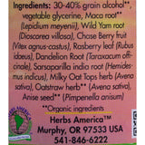 Ingredients : Maca (lepidum peruvianum ch.), Mexican yam, vitex berry, dandelion root, sarsaparilla, oat extract, raspberry leaf, and anise.
