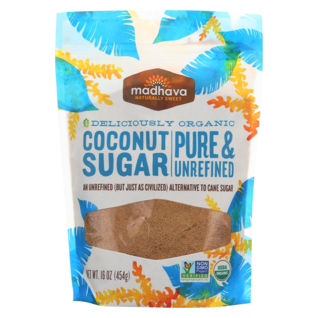 Madhava pure & unrefined organic coconut sugar is a perfect alternative to traditional cane sugar. The usda certified organic coconut blossom is the source for each 16 oz. Box of organic coconut sugar. With its own unique taste that leaves the fruit of the coconut behind, our non-gmo project verified sugar is a healthier addition to any smoothie, dessert, coffee or tea.