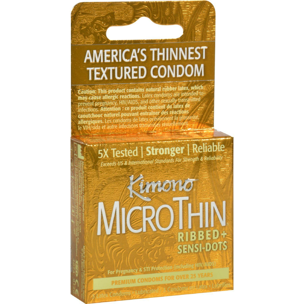 Mayer Laboratories Kimono Textured Condom Description: Ultra Textured Lubricated Sensi Dots Ribbed 3 Latex Condoms Latex condoms are intended to prevent pregnancy, HIV/AIDS, and other sexually transmitted infections. Disclaimer These statements have not been evaluated by the FDA. These products are not intended to diagnose, treat, cure, or prevent any disease.