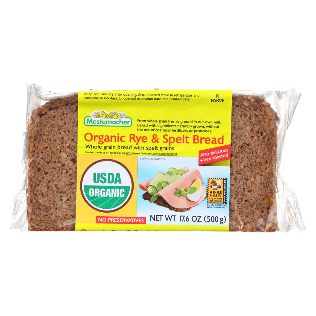 Mestemacher's organic rye & spelt whole grain bread with spelt grains does not contain artificial preservatives, wheat or cholesterol. Each 17.6 oz. Loaf has 7 one piece servings of all whole grain, kosher bread. Our rye & spelt bread is freshly ground in our own mill, baked with naturally grown ingredients without the use of chemical fertilizers or pesticides and is ideal for a cholesterol conscious diet.