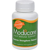 Kyolic Moducare Immune System Support Description: Over two decades of clinical research shows that Moducare, the proprietary blend of plant sterols and sterolins in a patented ratio, plays an important role in both enhancing a weak immune system and regulating an overactive one. Moducare is a daily immune supplement that restores, strengthens and balances the immune system. Moducare is a patented blend of plant sterols and sterolins in a clinically proven ratio of 100:1. These nutrients are derived from a natural pine source and come in a vegetarian capsule and chewable tablet.Moducare is the only clinically tested plant sterol/sterolin product which has been shown through research to balance and improve immune system functioning. Disclaimer These statements have not been evaluated by the FDA. These products are not intended to diagnose, treat, cure, or prevent any disease.