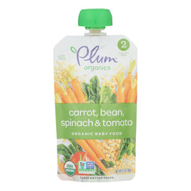 Plum Organics Second Blends Hearty Veggie Meal - Roasted Carrot Spinach And Beans - Case Of 6 - 3.5 Oz.