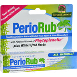 Nature's Answer PerioRub Description: Fast-Acting Refreshing Cool Mint Soothing Gel for Natural Relief from Tooth and Gum Discomfort With Patented Extract of Phytoplenolin Naturally Soothing Long-Lasting Dentist Formulated With Co-Q10 and Folic Acid PerioRub for Periodontal Health is a natural gel that offers fast, effective, long-lasting relief from tooth and gum discomfort. Our proprietary vegetarian formula contains soothing organic and responsibly wildcrafted herbs plus essential oils. These ingredients work together to calm tooth and gum distress. PerioRub also freshens breath while promoting healthy gum tissue. It is further enhanced with Phytoplenolin, a Holistically Balanced patented herbal extract that has been shown in independent laboratory studies to promote cell vitality. For temporary relief of tooth and gum discomfort. May also be used as an abrasive-free toothpaste for sensitive teeth. Free Of Preservatives, alcohol, synthetic chemicals , solvents, sodium lauryl sulfate, artificial sweeteners, colors, and dyes. Disclaimer These statements have not been evaluated by the FDA. These products are not intended to diagnose, treat, cure, or prevent any disease.