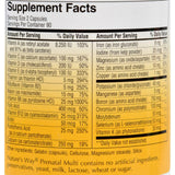 Ingredients : Beta carotene; biotin, biotin triurate; boron, amino acid chelate; calcium carbonate; calcium pantethonate; chromium polynicotinate; copper, amino acid chelate; folic acid, folate; iron, gluconate; kelp (whole thallus); magnesium oxide; manganese amino acid chelate; molybdenum triuturate; niacinamide; potassium chloride; pyridoxine HCL; quercetin, eucalyptus; riboflavin, vitamin B-2; rutin; selenium, l-selenomethione; thiamine, vitamin B-1; vitamin A, retinol palmitate; vitamin B-12, cyanocobalamin; vitamin D3 (cholecalciferol); vitamin E (d-alpha tocopheryl); vitamin K, phytonadione; and zinc amino acid chelate. Other ingredients: gelatin, magnesium stearate, and silica.