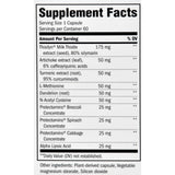 Ingredients : Thisilyn Milk Thistle 175mg, Artichoke 100mg, Turmeric 100mg, L-Methionine 100mg, Dandelion 50mg, Protectamins Broccoli Concentrate 50mg, Protectamins Cabbage Concentrate 50mg, N-Acetyl Cysteine 50mg, Alpha Lipoic Acid 25mg, Plant-Derived Cellulose (Capsule), Vegetable Magnesium Stearate, and Silica.