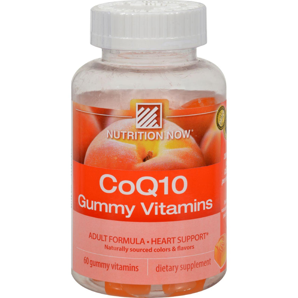 Nutrition Now CoQ10 Adult Gummy Vitamin Description: Heart Support Natural Colors and Flavors Nutrition Now CoQ10 gummies, made with natural flavors and colors, contain 200 mg of CoQ10 per serving for heart support. Free Of Wheat (gluten), milk, eggs, peanuts, soy, artificial colors and flavors. Disclaimer These statements have not been evaluated by the FDA. These products are not intended to diagnose, treat, cure, or prevent any disease.