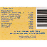 Sea Minerals Mineral Bath From The Dead Sea Description: Detoxification Relief of Tension Skin Toning Muscular and Joint Discomfort 100% Natural Feel Relieved Feel Relaxed Feel Refreshed ... put a dead sea health spa in your bath. Natural Dead Sea Bath salts into your bath water brings relaxation and refreshment, helps relieve tension and brings soothing comfort to muscles and joints. 15-20 minutes is almost as enjoyable as a trip to the Dead Sea itself. Recommended For: Relief of Tension, Detoxification, Smooth Skin, Muscular Pain, Tired Aching Feet, and Skin disorders. Disclaimer These statements have not been evaluated by the FDA. These products are not intended to diagnose, treat, cure, or prevent any disease.